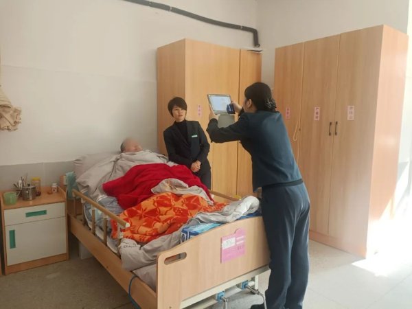 近日,因忘记支取密码,高中生小李拿着父亲的邮储卡来到万安县分公司仁德路营业所求助。在得知小李的父亲因全身瘫痪住进了养老院后,网点负责人当即协调班务,带着柜员和营业主管随小李来到其父亲居住的养老院。由于小李的父亲只有头部能轻微活动,无法顺利配合肢体动作,给身份识别过程造成一定困难,经过二十多分钟的不断调整和尝试,最终识别成功重置了密码。躺在床上的小李父亲连连道谢:"辛苦你们大老远地专门跑一趟,帮我解决了问题,谢谢了。”